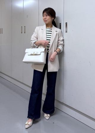 万能なブラックとオフホワイト、春らしい印象を演出できるブルー。 チャコールグレーとオフの柔らかなボーダー柄は、品のいいカジュアル感を演出してくれます。