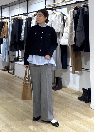・羽織として取り入れる際は、アイラインスカートとも好バランス。