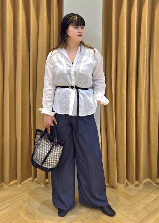 きちんと感は残しつつもややゆったりしたサイズ感で、羽織りとしても使えます。昨年までのラミー素材から、もう少し厚さのあるリネン素材に変更しています。