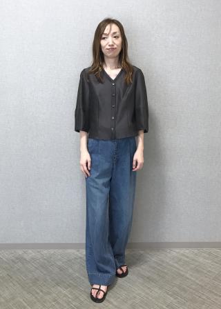 シルエットを最大限活かすため、パンツ合わせのスタイルがおすすめです。