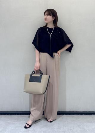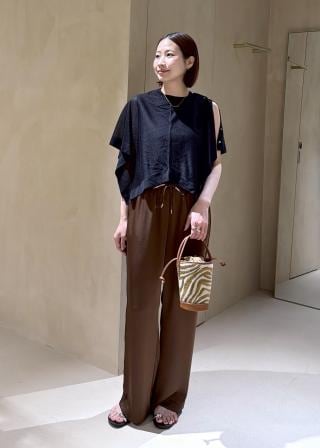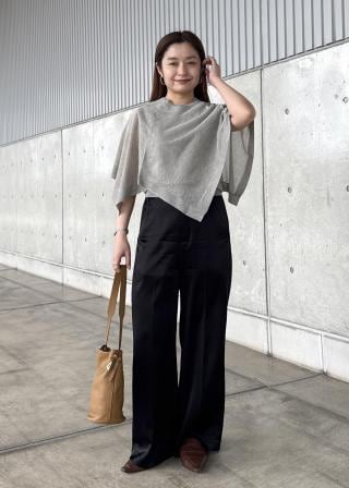 デニムパンツやスカーフプリントパンツと合わせれば、休日のお出かけシーンにぴったりなデザイントップスに。