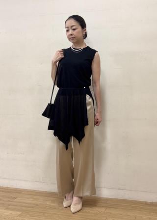 フロント部分をサイドにする事で裾がアシンメトリーのようになるなど着方で印象を変えられるので