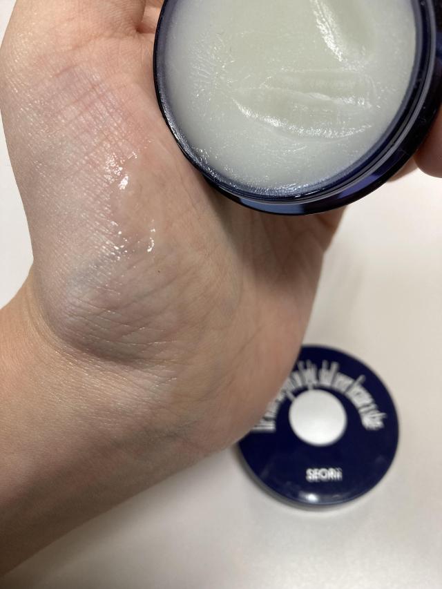 ひまし油がベースとなっているだけあって、肌に乗せるととろけてオイルのようにすーっと肌に馴染んでくれるライトなテクスチャー。