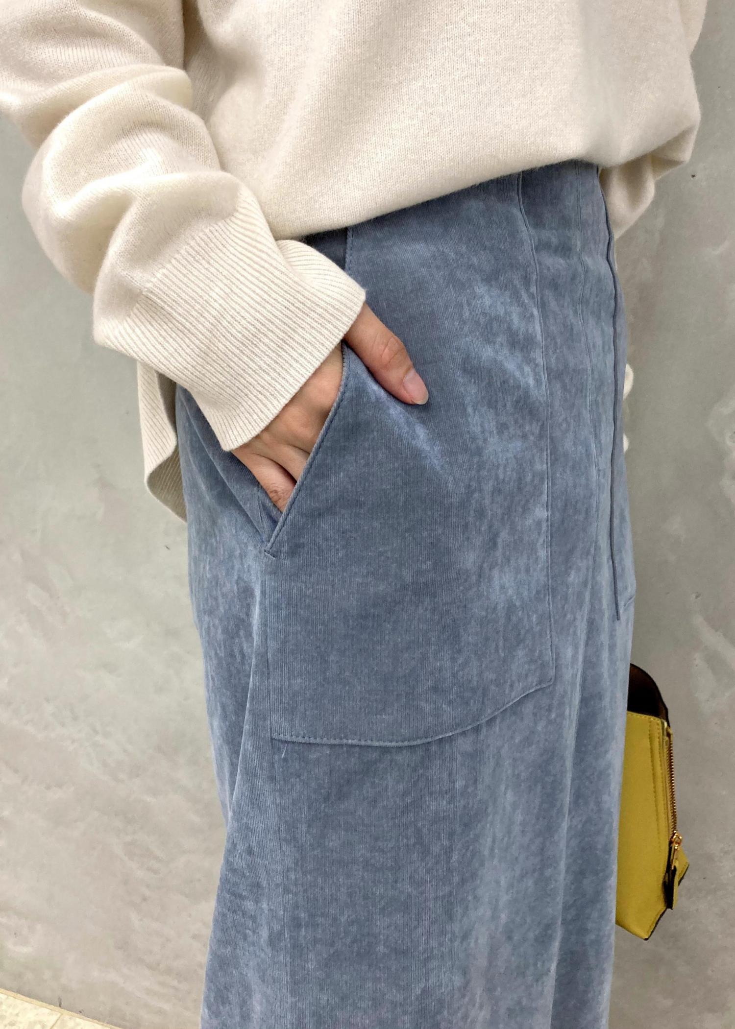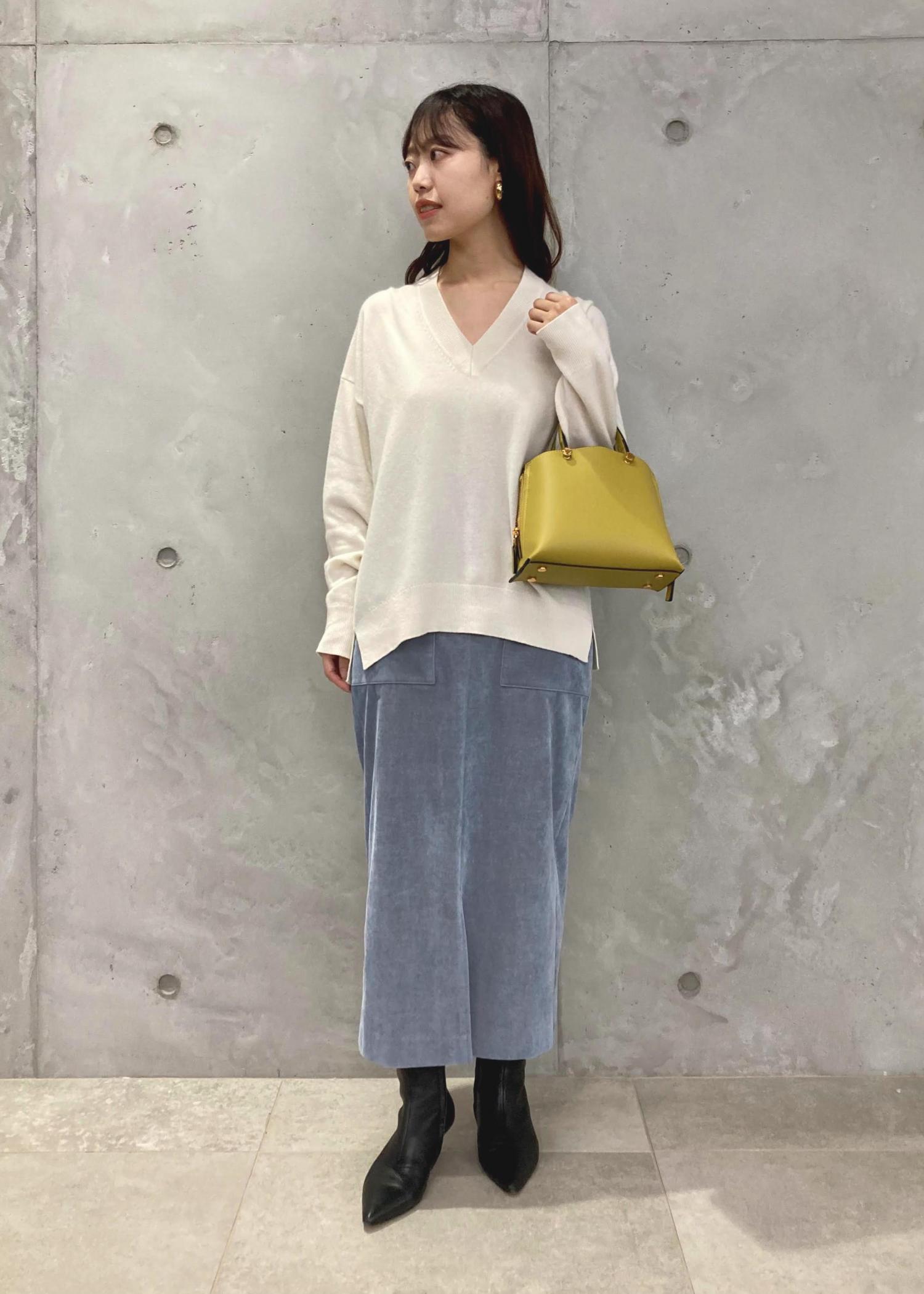 カシミヤ混ニットとコーデュロイスカートをあわせました。