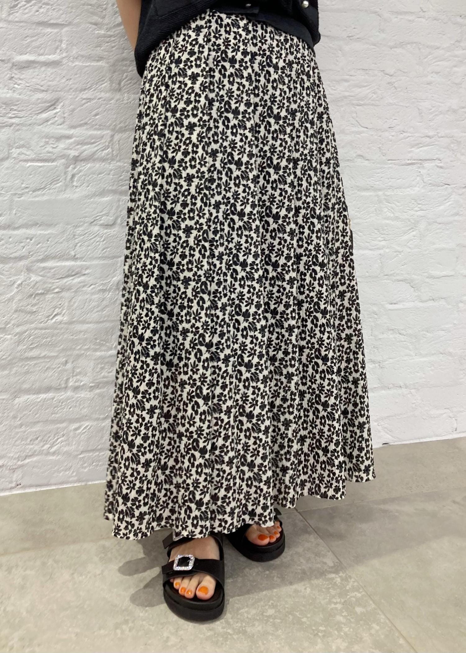 ワッシャー素材のスカートを合わせて、