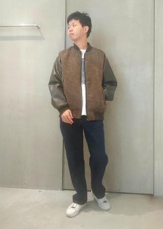 スリーブ部分がフェイクレザー仕様のジップアップのブルゾンです。