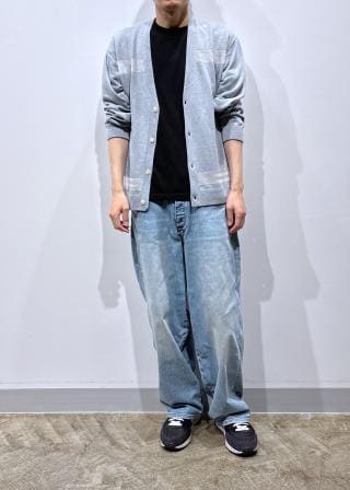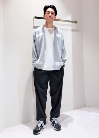 表面に凹凸感などもなくキレイめな着こなしに合わせやすいのでチノパンやイージーパンツなど大人っぽい雰囲気で合わせても相性が良いです◎。