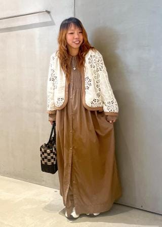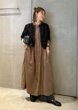 着丈が短いので、ワンピースやフレアースカートと相性が良いです。