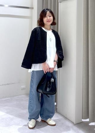 ウエスト下くらいのショート丈ですっきりとした印象なのでワンピースの羽織りとしてもおすすめです♩