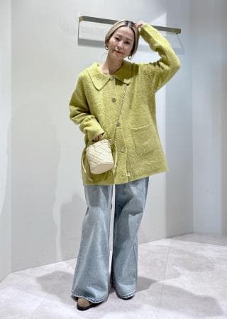 毛足が長めでふんわりと柔らかな質感のニットコーディガン