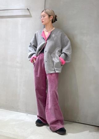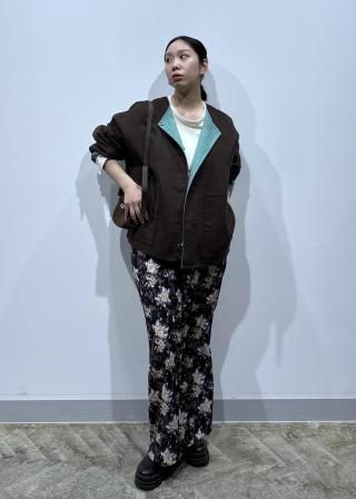 オーバーシルエットでインナーに厚手のニットやスウェットが余裕をもってきていただけます。裏地付きで風通しを防ぎ、また袖裏や、襟裏の配色がポイントでコーディネートがより華やかな印象に。