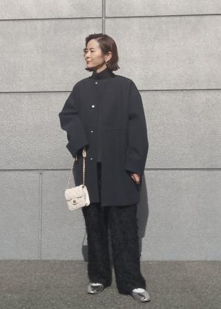 長め丈でもおさまりのいいコクーンシルエット。ワイドパンツやワンピースなど、ボリューム感のある着こなしにも好バランスが作れます。