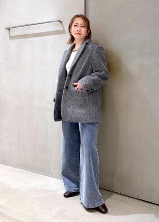 ジャケット感覚で羽織れるコートタイプで、オーバーサイズ仕立てで抜け感のある雰囲気を演出します。