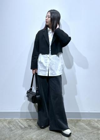 メンズライクなワイド感とレディースらしいクロップド丈が特徴のボクシーシルエット。