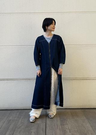 綿100%のデニム素材です。ゆったりシルエットでワンピースとしてはもちろん、レイヤードの有無によって、シーズンレスで着用もしていただけます!