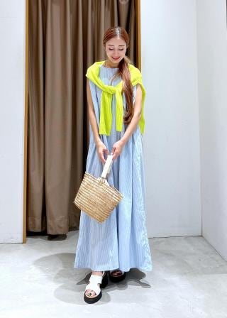 ノースリーブなので上からカーディガンを羽織ったり、キャップやスニーカーなどでカジュアル感をプラスしていただくとこなれ感のあるトレンドのスタイリングになります。