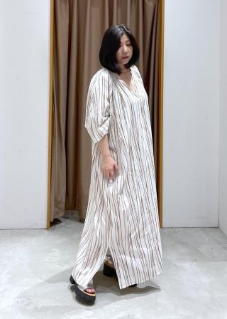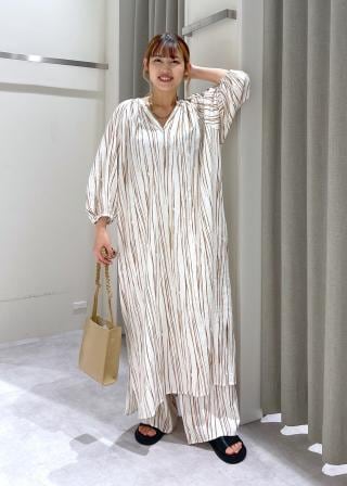 【セットアップ対応】ボリュームスリーブストライプワンピース