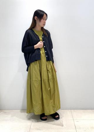 カットソーと綿の清涼感のある素材がドッキングになった異素材ワンピース。