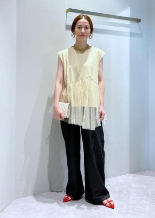 カジュアルスタイリングはもちろんヒールなど足元を女性らしくして頂くとフェミニンな印象でも着用頂けます。同素材のミニスカート(品番:GUC24210)と合わせいただくのもおすすめ!