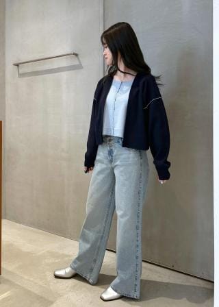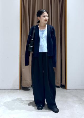 目を引く配色がポイントのカーディガンなので、ボトムスはシンプルなものがおすすめ!ややコンパクトなサイズ感のアイテムなのでボリューム感のあるボトムと合わせるとバランスのよいスタイリングになります。