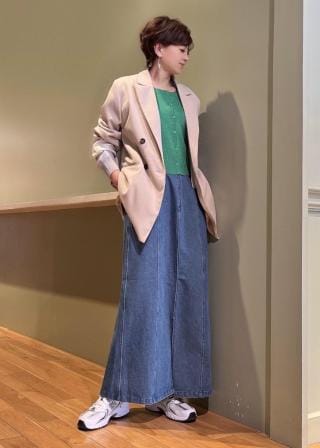 生地感は少し薄手ですがその分インナーも重ねやすく、上からアウターも着やすいアイテムです!