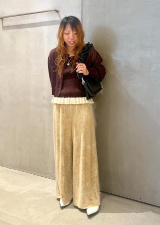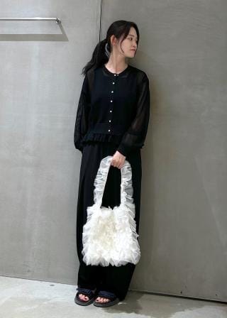 ゆったり着れるカーディガンと裾フリルのリブ編みタンクトップを一緒に着用していただくのはもちろん、それぞれ単品でも着用いただけます。