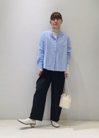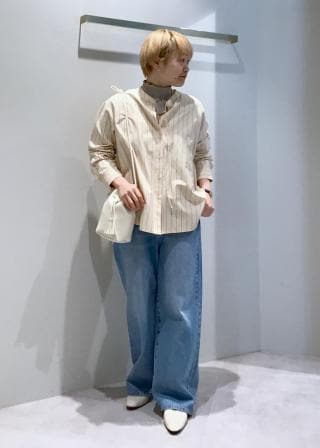 ロールアップなどのデニムや、スラックスで大人っぽくきれいめにも。どんなボトムと合わせても馴染みやすくて◎