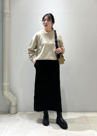 腰回りにかけてゆるっと落ちるフォルムは、パンツにもスカートにも合わせやすいです。