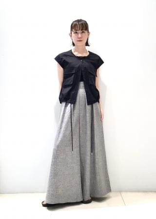カジュアルになりすぎない、柔らかい素材感をチョイスすることで大人の抜け感あるスタイルが完成します。裾部分はドロストすることで裾をふんわりさせ、バルーンっぽく魅せることが出来ます。