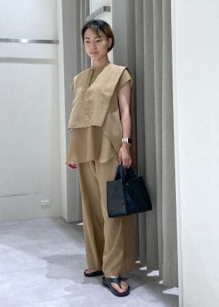 同素材のワイドパンツ(品番:GUS15030)や、テーパードパンツ(品番:GUS15040)と合わせていただくのがおすすめ!