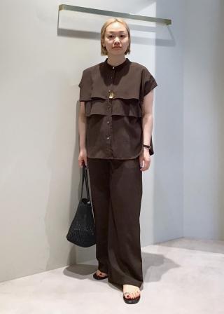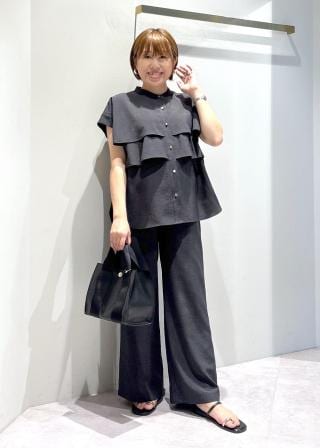 程よいボリューム感の2段フリルが目を引くデザインブラウス。
