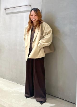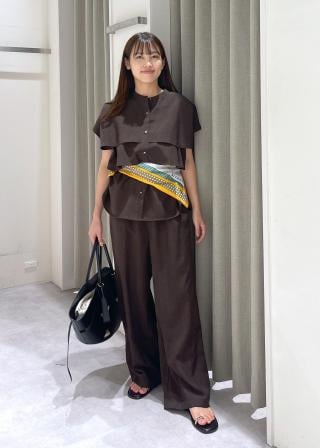 同素材のワイドパンツ(品番:GUS15030)やセンタープレスパンツ(品番:GUS15040)とセットアップでお仕事着として着用していただくのがおすすめです。