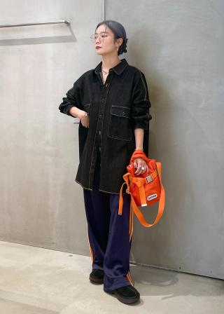 メンズライクなオーバサイズが抜け感たっぷりに着こなせます。しっかりしたデニムですが程よく柔らかく、肌から離れ過ぎない生地が扱い易いです。アウターとしても◎