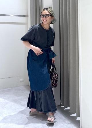 同素材を使用したフレアースカート(品番:GUC15070)とセットアップでワンピースっぽく着て頂くのもおすすめです!