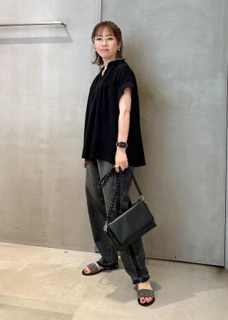 オフにはデニムや柄のボトムと合わせて、カジュアルな着こなしもおすすめです。