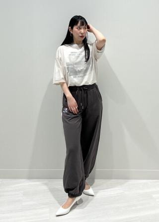 全体は、オーバーサイズで抜け感のあるシルエット。ゆったりとしたシルエットと5分袖デザインが特徴で、適度なリラックス感を演出。