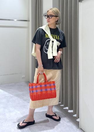 夏休みで伺った木更津アウトレットにて購入しました。昭和の時代に流行ったニルバーナのTシャツですが、懐かしくて買ってしまったのですが長Tやシャツと重ね着すると今風に着こなせます。一枚でもゆとりあるサイズなので涼しく着こなせます。