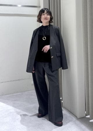 長めの袖丈とプチハイネックでレイヤードした際も決まる万能アイテムです!
