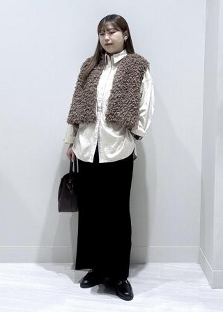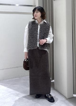 プードルのようなカーリーなファー素材を使用することでカジュアルながらも上品な印象に。