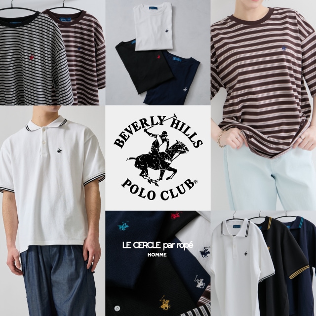 【BEVERLY HILLS POLO CLUB】1ポイント刺繍ボーダーTシャツ