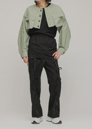 ミリタリーシャツを切り落としたようなデザインになったショート丈のシャツブルゾン。