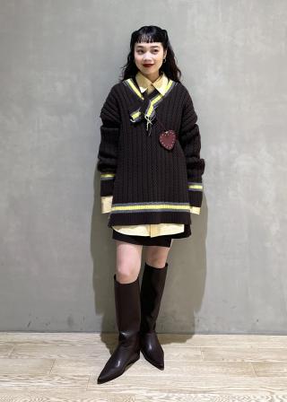 サイズ38を着用しました。ボクサー型のデザインで立体があります。あえてメンズっぽく着つつパンツのハートで女性らしさをプラス。中にニットを着ても十分余裕があるので冬でも着回しできます