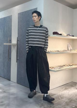 首回りや袖口は適度なゆとりに設定することで、スッキリとしたメリハリのあるシルエットにしています。