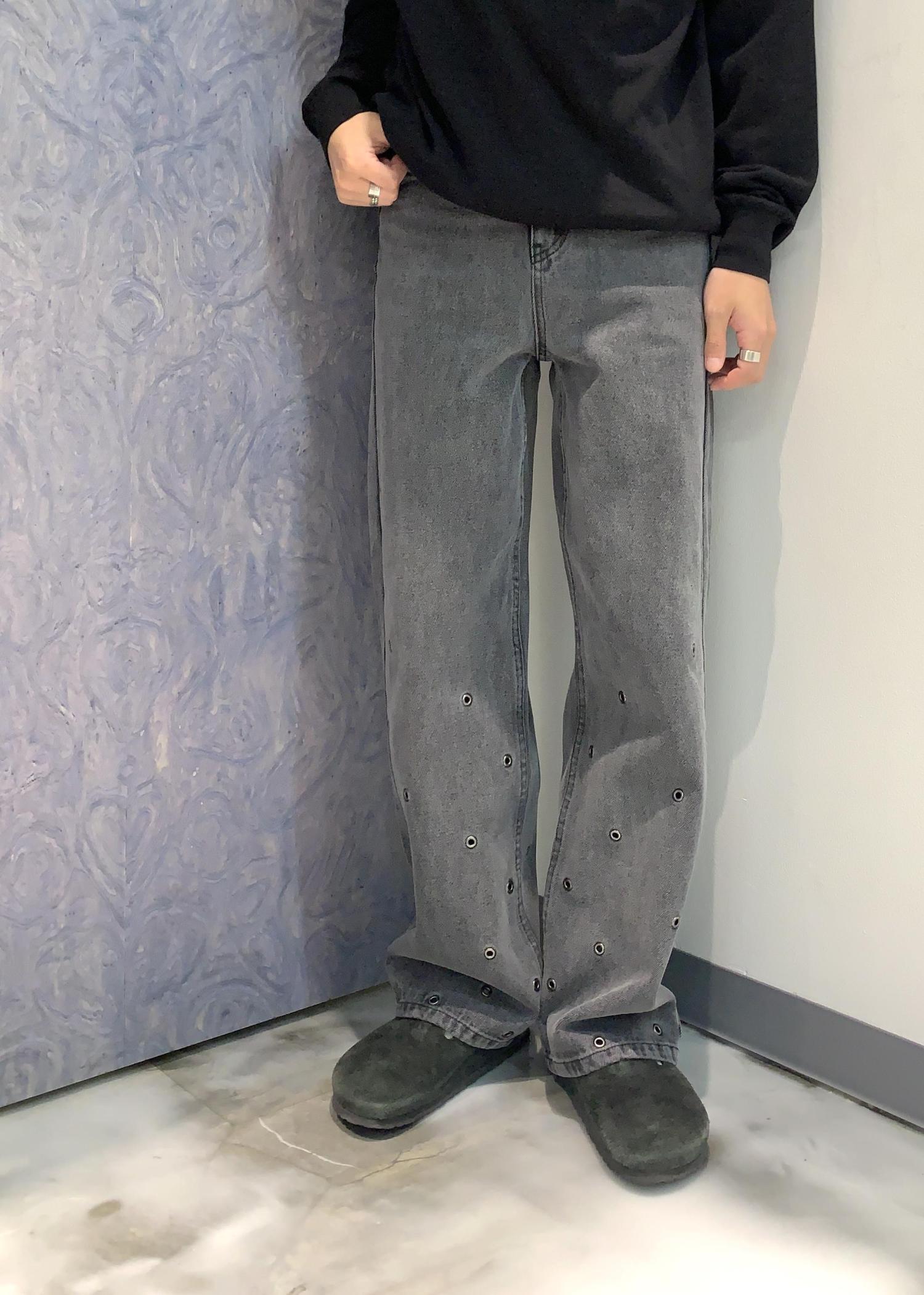 デニムは程よい太さでどんなスタイリングにも合いやすく、金属パーツが良いアクセントになってます。