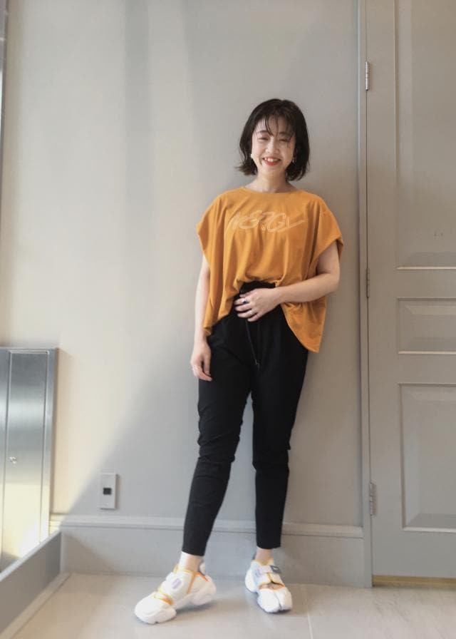 パンツは、ハイウエストで紐で調節もできるのでリラックスして履ける楽ちんアイテム。