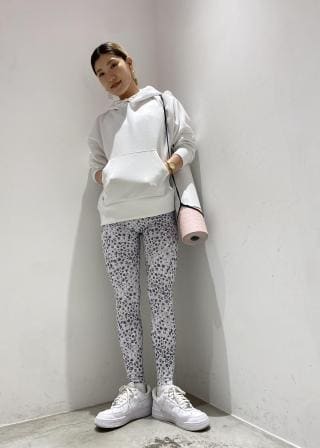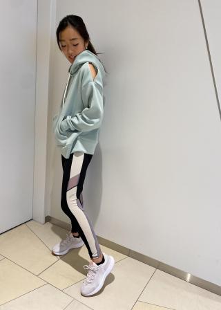 スポーティーな印象のフーディーを、柔らかな素材感でカジュアルになりすぎず着こなせるアイテムです。