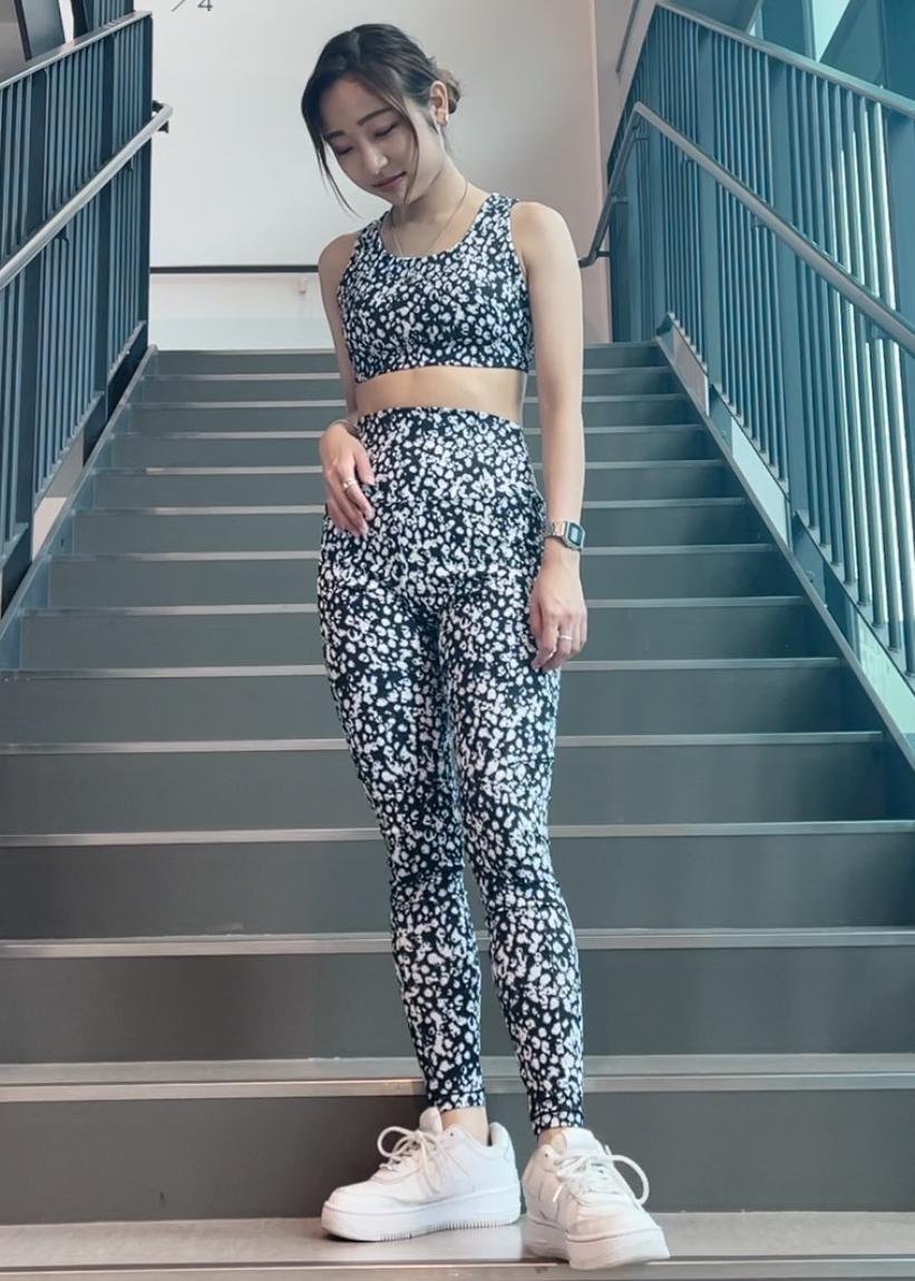 新作のウェアはデイリーでも使いやすいレオパード柄です!タイツはハイウエストになっているのでお腹周りのカバーもできますし柔らかくて伸縮性もあってとっても履きやすいです!ブルゾンも軽くて着やすいので羽織としておすすめの一枚です!!