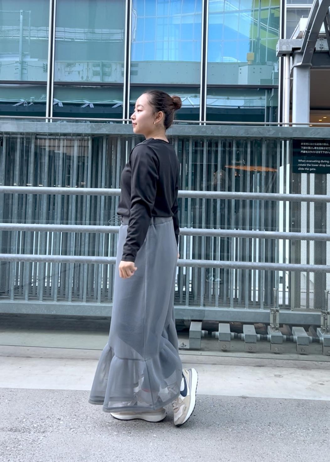 今回私のイチオシのダブルラッセルのスカートコーデになります! 今回はグレーのスカートを履いてみました! 黒よりもシースルーを楽しめます! 今回は中に黒のカーゴスパッツを着用してみましたが、色物や柄物と合わせてもとても可愛いです! 今回の新作は様々なコーディネートを組めるので是非ご自身の1番のコーデを見つけてみて下さい♪ LINEで渋谷スクランブルスクエア店スタッフに相談は【友達だち追加】をタップをして下さい