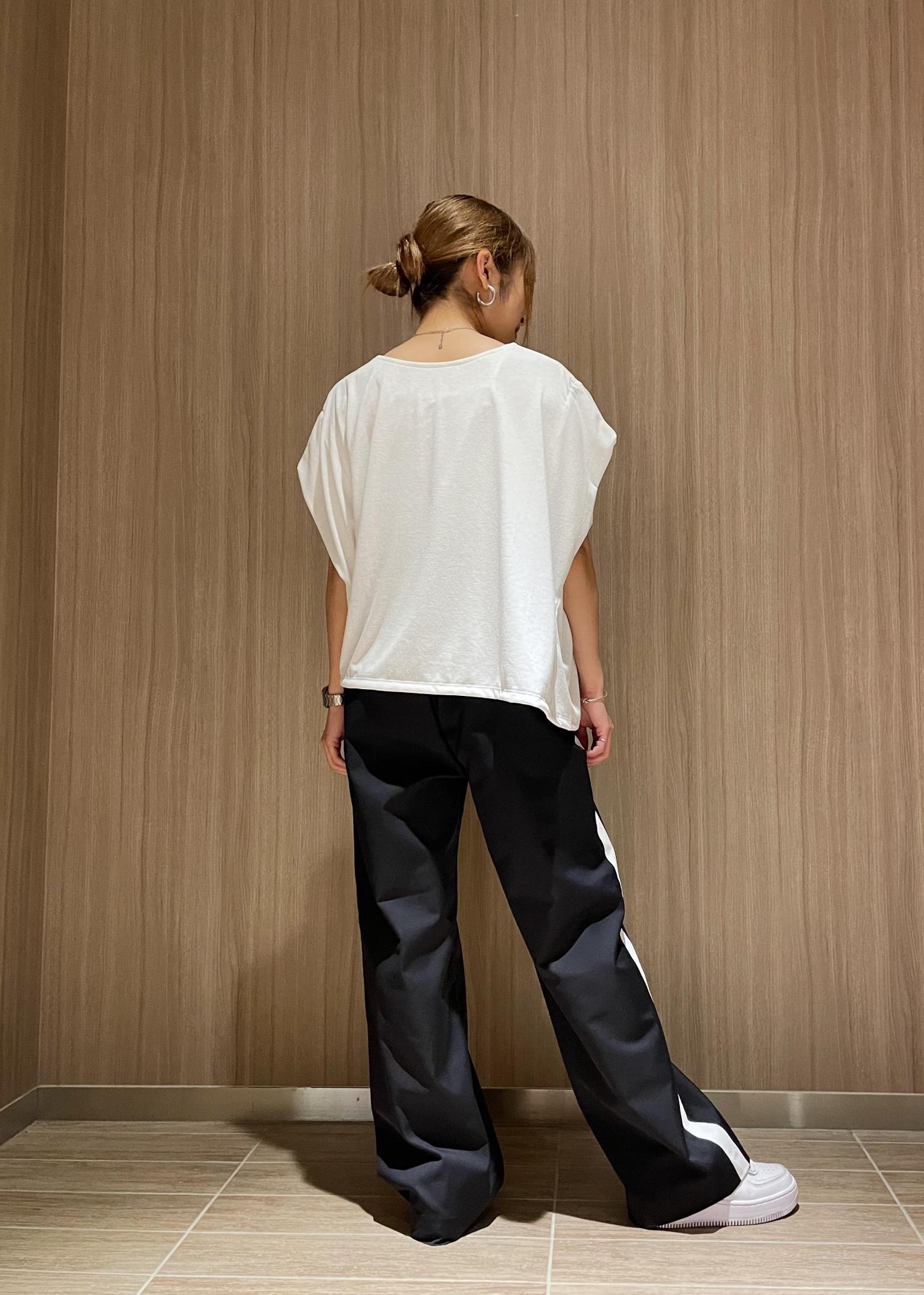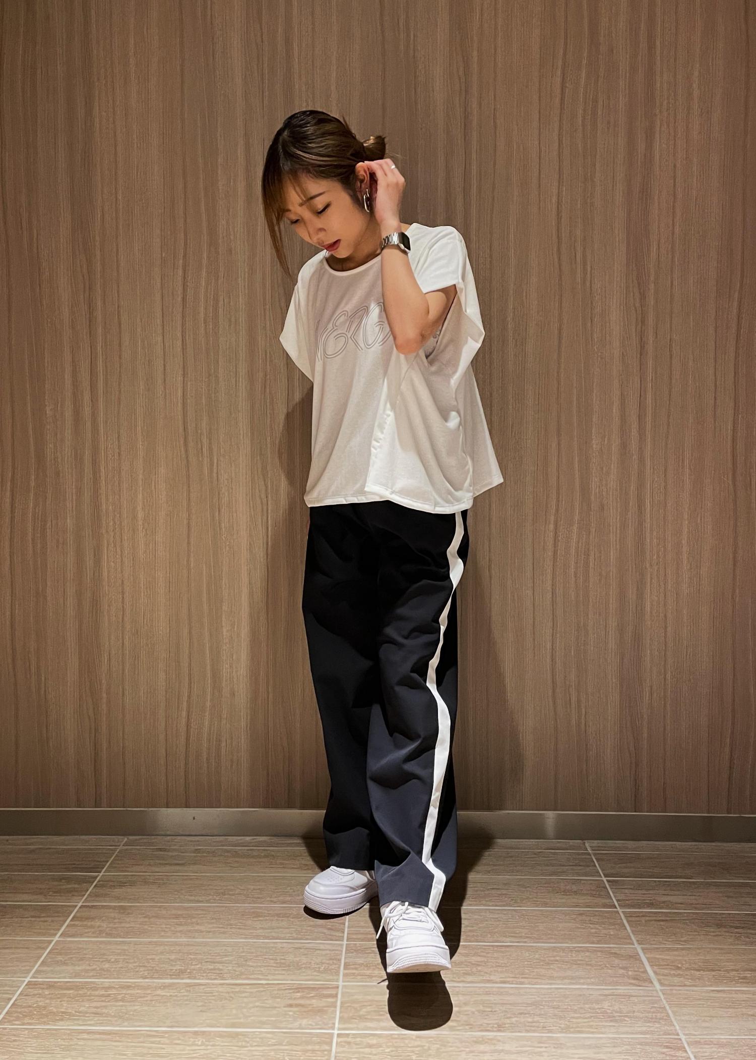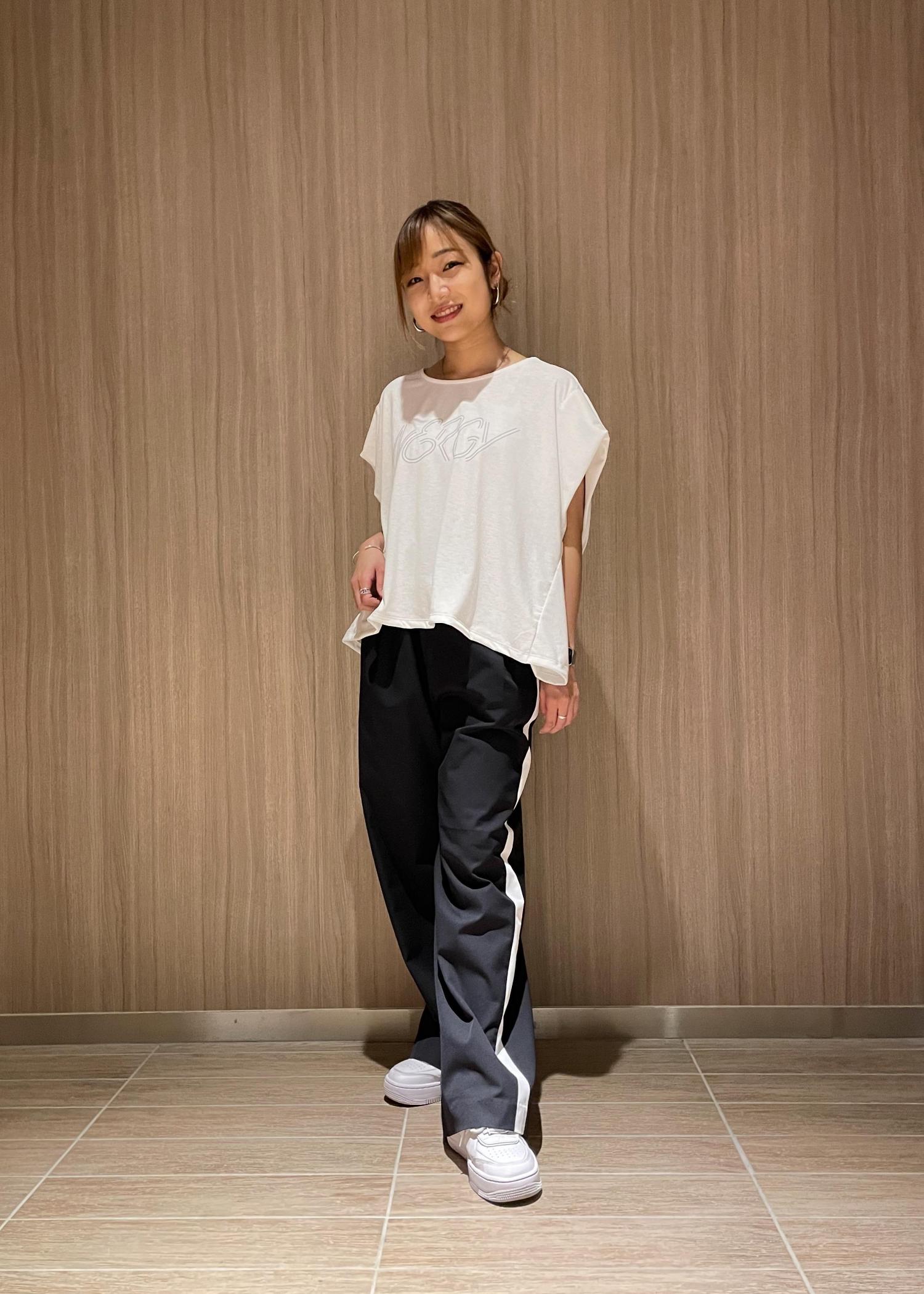 パンツがゆったりしているので、Tシャツは短丈を合わせるのバランスが良くスタイルアップ!!