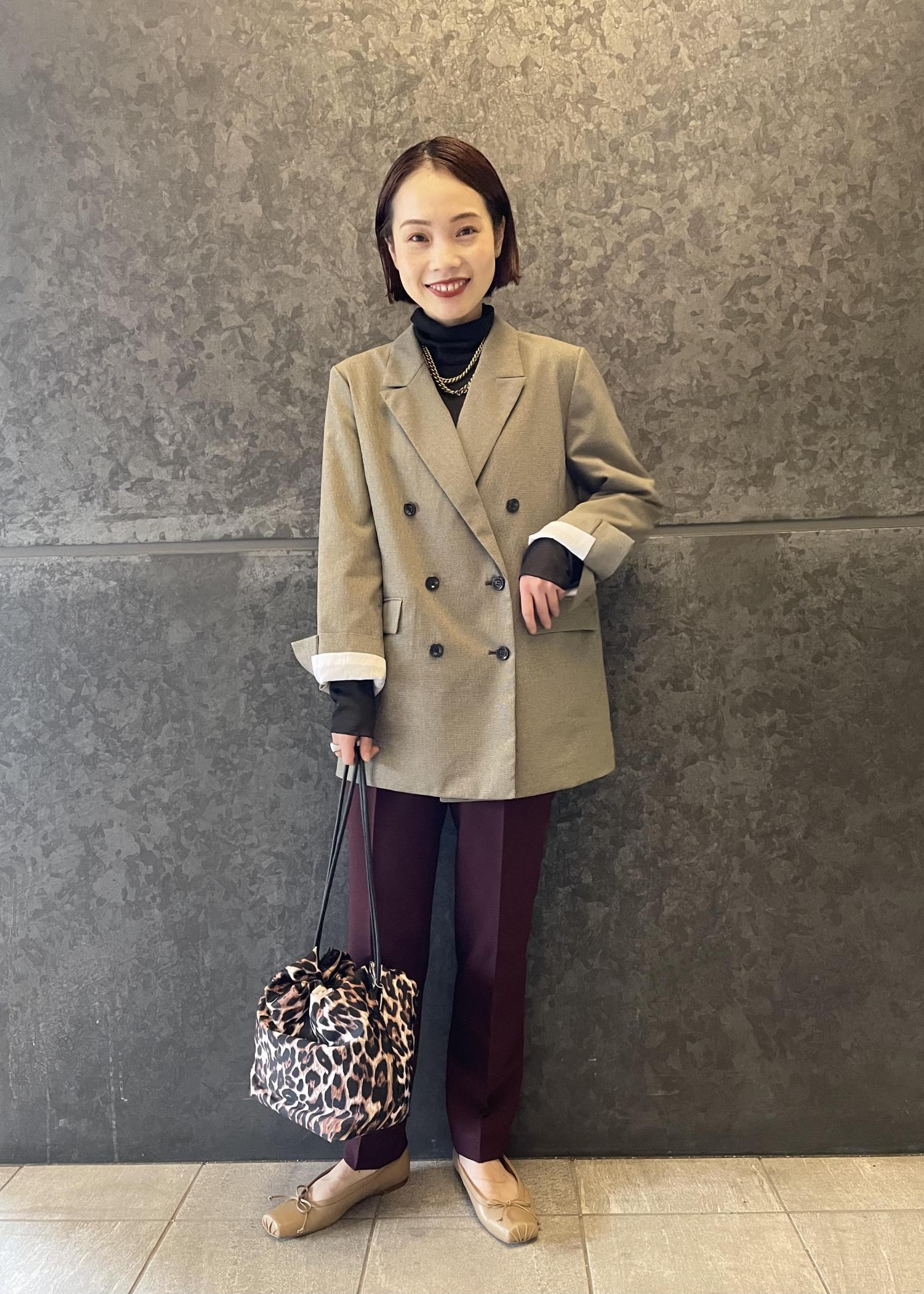 ジャケットは少し大きめのON・OFF使いやすいアイテムです。細身のスラックスを合わせてすっきりとしたスタイルに。同素材のパンツを合わせたセットアップもおすすめ。